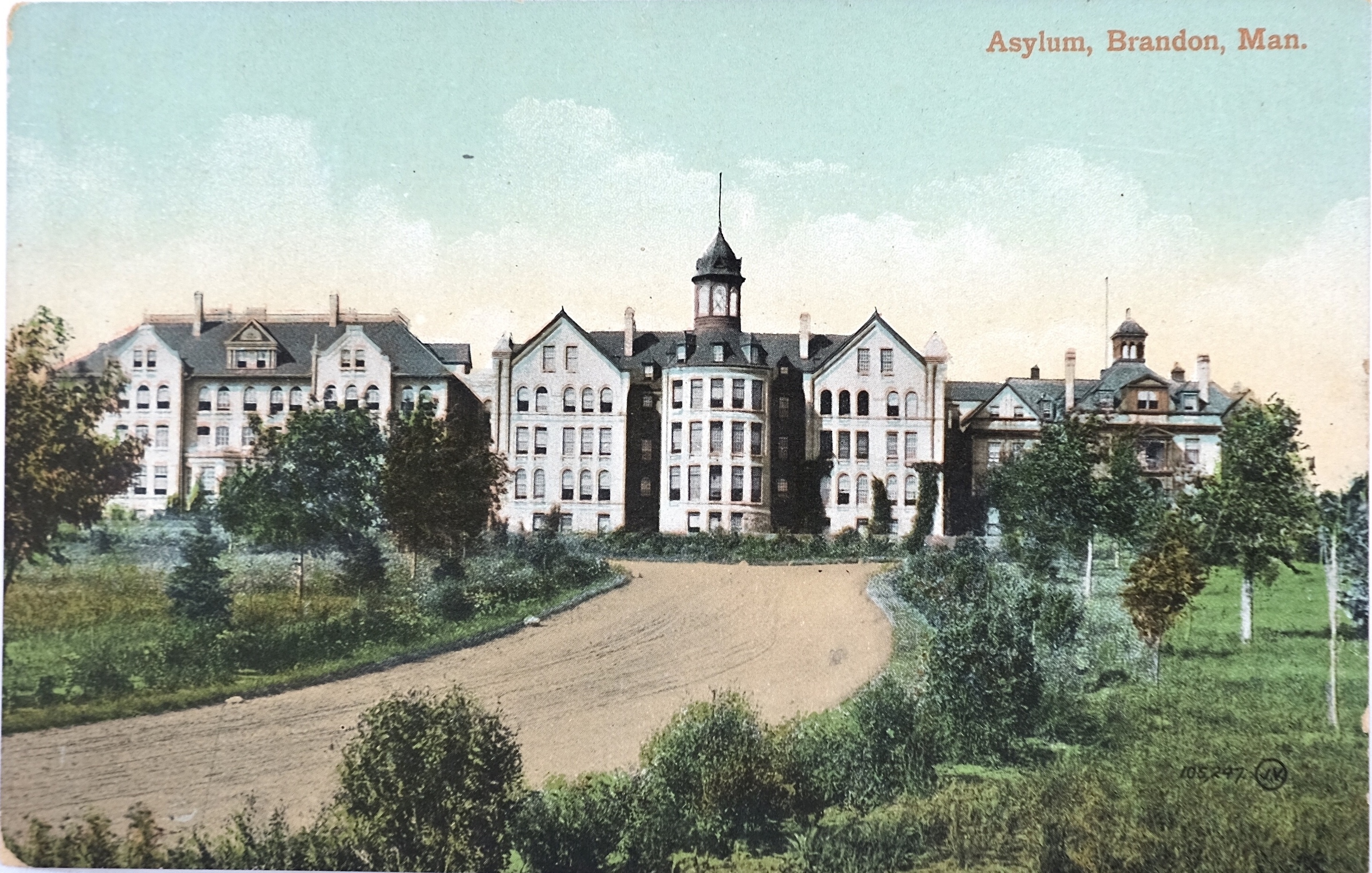 Asylum postcards fit in the category of institutional picture postcards: cards that feature images of the public institutions a particular community had within its boundaries. In the early twentieth century, public institutions – be they schools or asylums – featured aesthetically attractive architecture, large manicured lawns, and beautiful gardens. In other words, they made for a “pretty picture.”